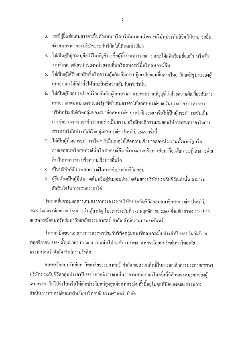 ประกาศ การสรรหาบริษัทประกันชีวิตกลุ่มประจำปี 2569