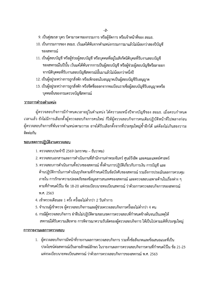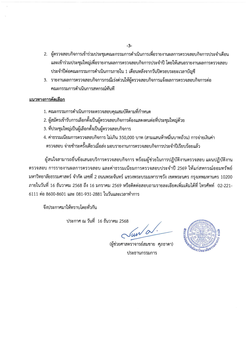 ประกาศ รับสมัครผู้ตรวจสอบกิจการสหกรณ์ประจำปี 2569