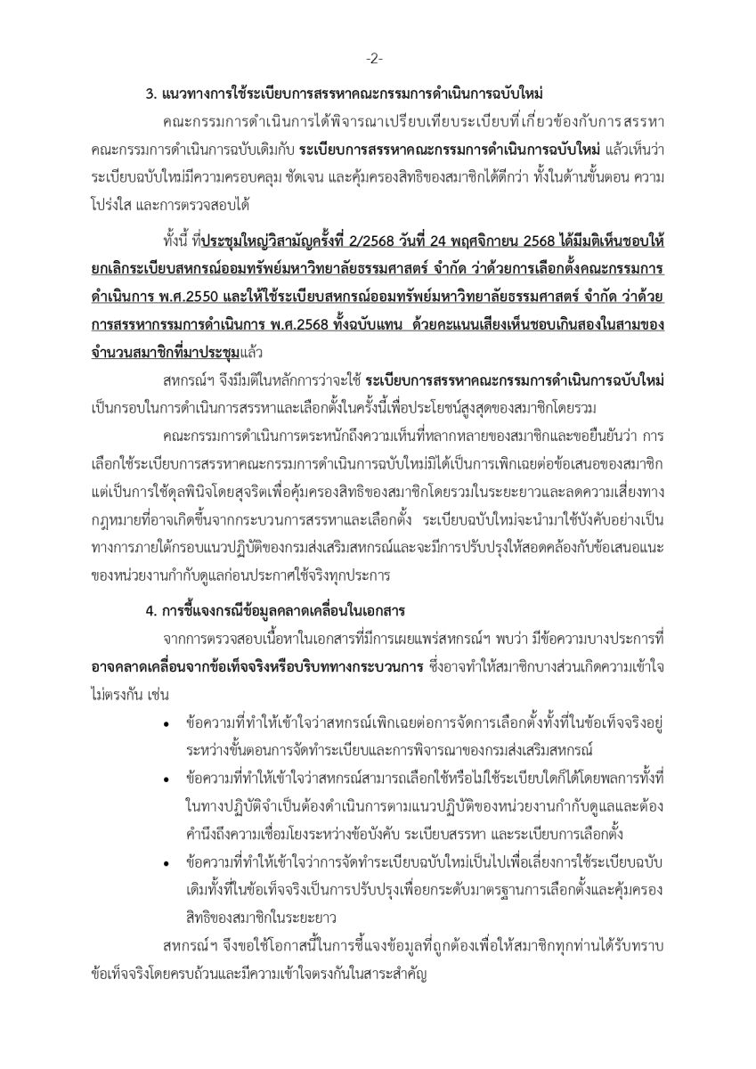 เรื่องคำชี้แจงกรณีเอกสารแสดงความคิดเห็นเกี่ยวกับกระบวนการจัดประชุมแนวทางการใช้ระเบียบการสรรหาคณะกรรมการดำเนินการฉบับใหม่