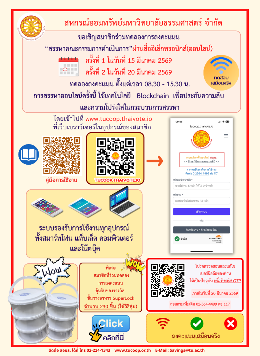 ขอเชิญสมาชิกร่วมทดลองการลงคะแนน