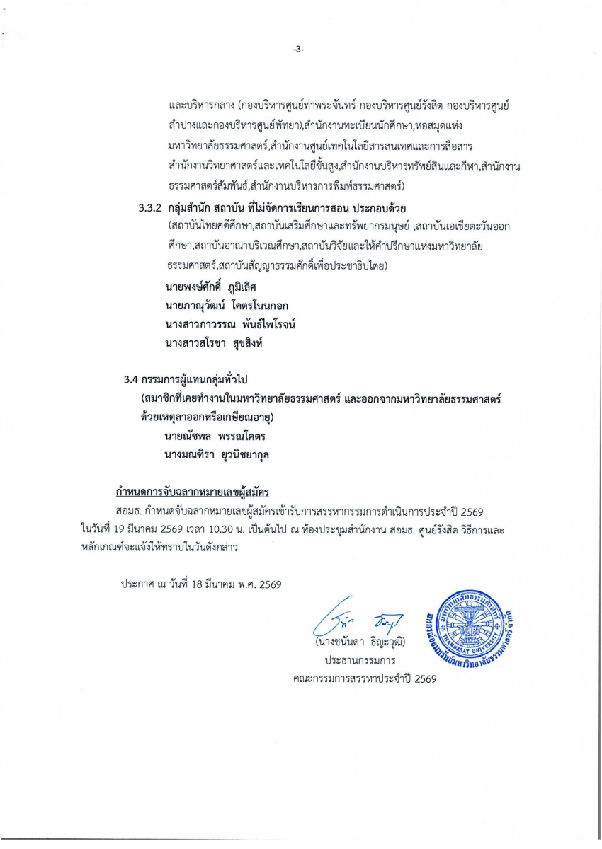 ประกาศ รายชื่อผู้สมัครเข้ารับการสรรหากรรมการดำเนินการ ประจำปี 2569