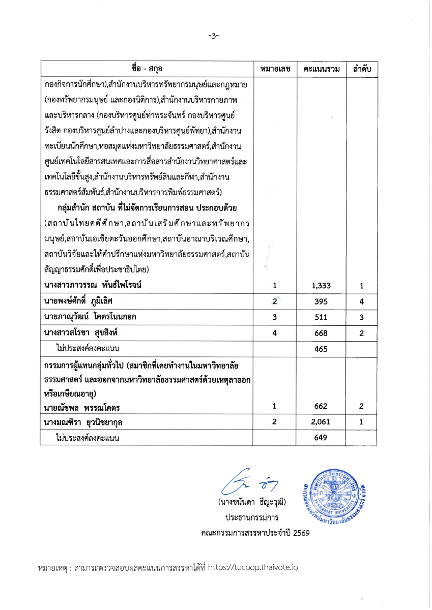 ประกาศ คะแนนการสรรหากรรมการดำเนินการ ประจำปี 2569