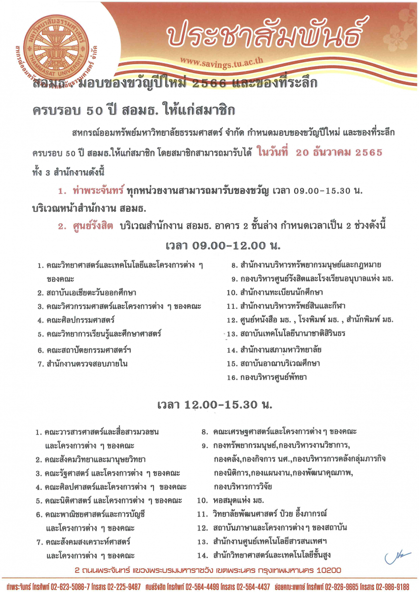 สอมธ. มอบของขวัญปีใหม่ 2566 และของที่ระลึก ครบรอบ 50 ปี