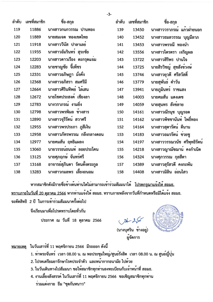 ประกาศรายชื่อผู้มีสิทธิ์เข้าร่วมสัมมนาสมาชิกนอกสถานที่ ครั้งที่ 2/2566