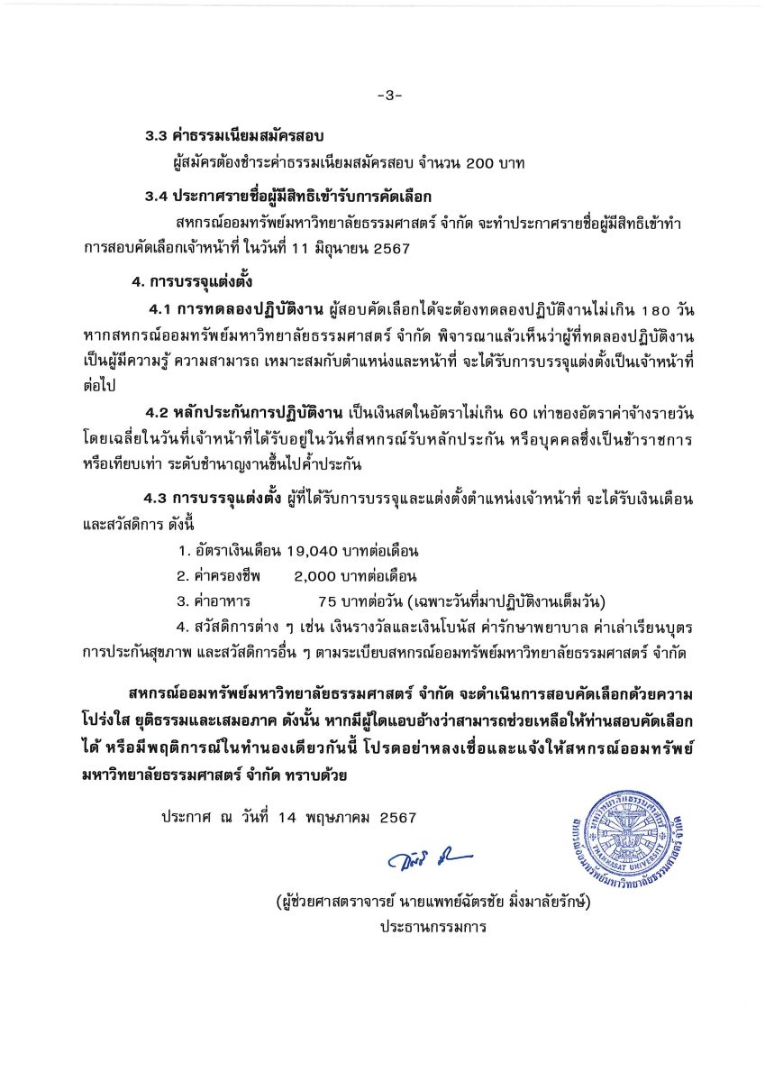ประกาศฯเรื่องการรับสมัครเจ้าหน้าที่สหกรณ์ออมทรัพย์