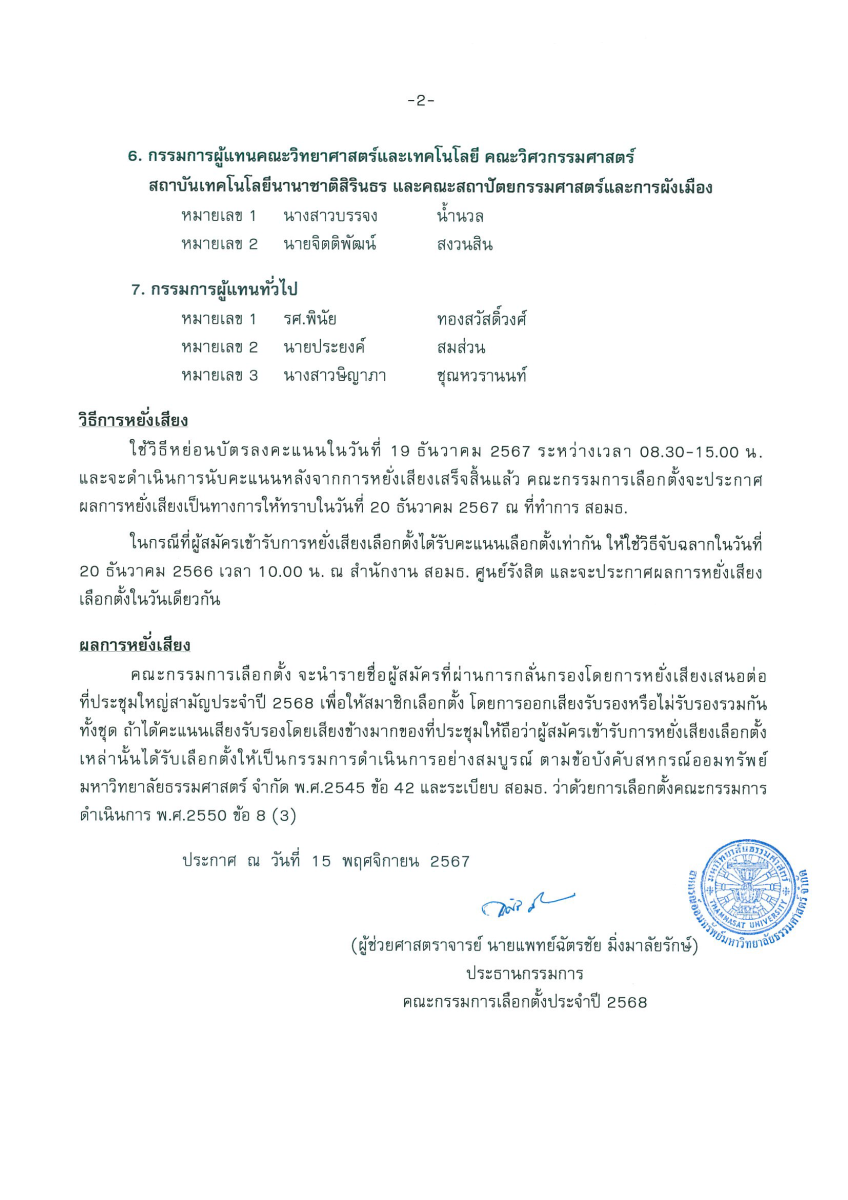 ประกาศ หมายเลขผู้สมัครเข้ารับการหยั่งเสียงเลือกตั้งกรรมการดำเนินการประจำปี 2568