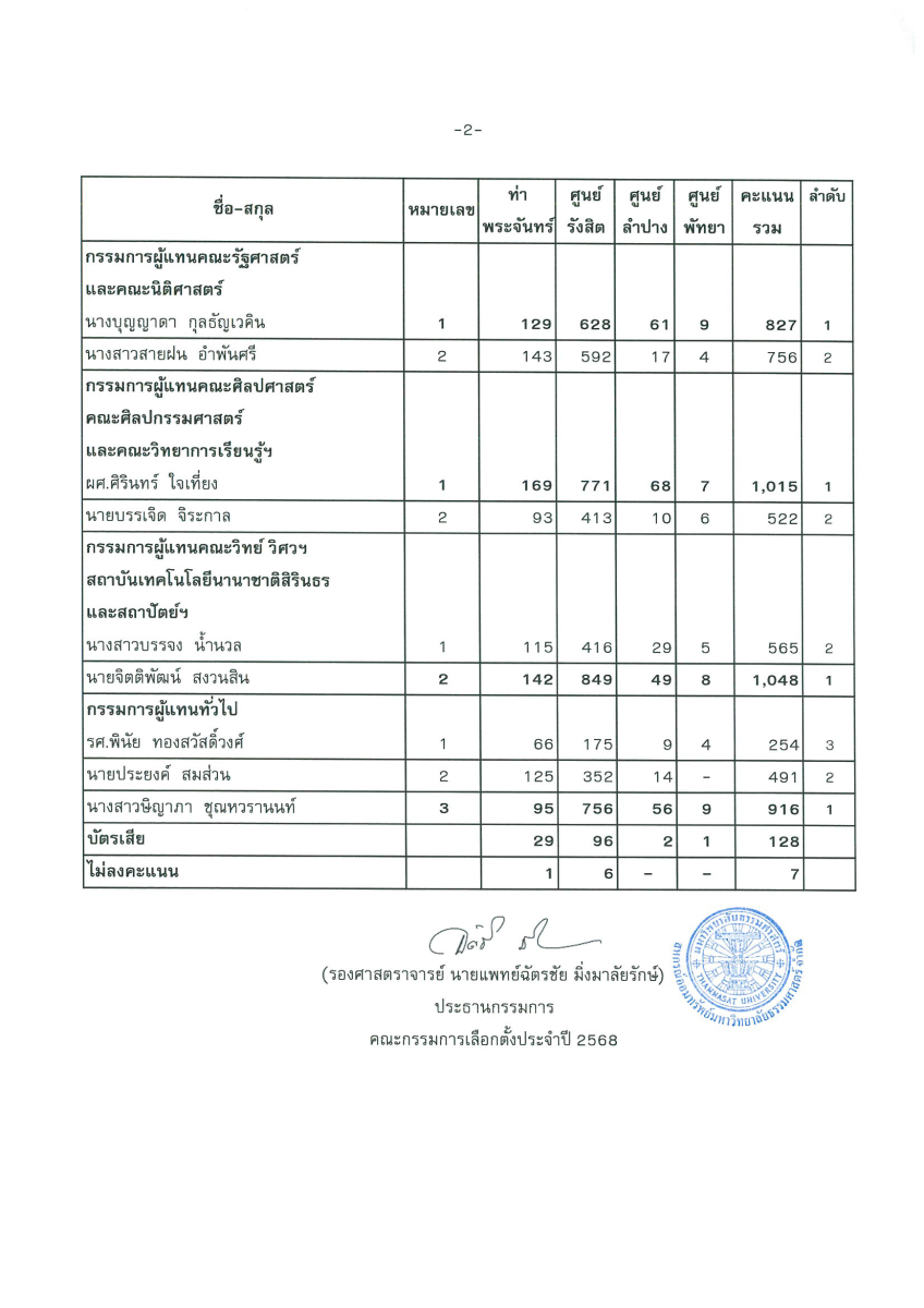 ประกาศ ผลและคะแนนการหยั่งเสียงเลือกตั้งกรรมการดำเนินการประจำปี 2568