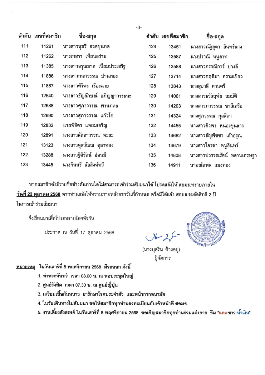 ประกาศรายชื่อ การสัมมนาสมาชิกนอกสถานที่ ครั้งที่ 2/2568