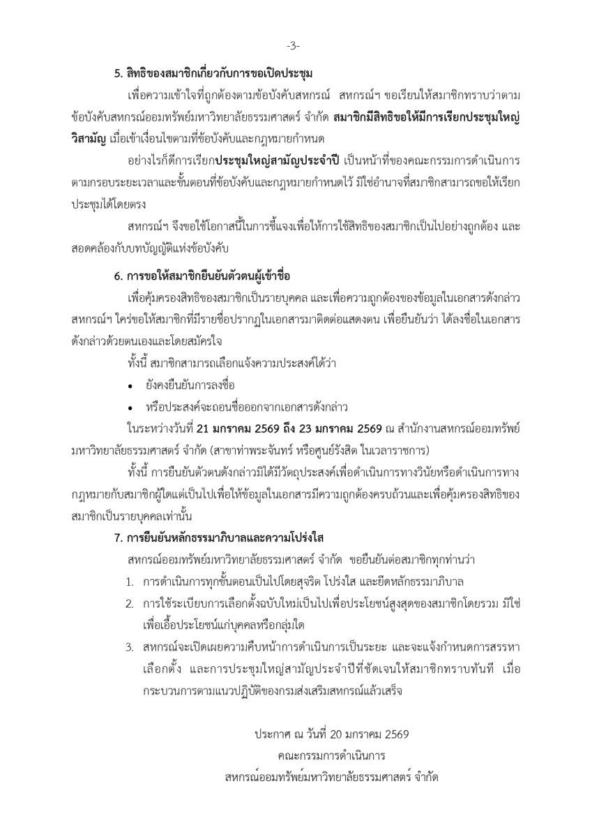 ประกา ศสหกรณ์ออมทรัพย์มหาวิทยาลัยธรรมศาสตร์ จำกัด