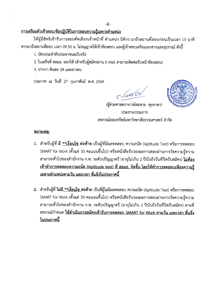 ตามที่สหกรณ์ออมทรัพย์มหาวิทยาลัยธรรมศาสตร์ จำกัด ได้ประกาศรับสมัครเจ้าหน้าที่สหกรณ์ออมทรัพย์ ตำแหน่ง นิติกร ระหว่างวันที่ 5 - 30 มกราคม 2569 ตามประกาศสหกรณ์ออมทรัพย์มหาวิทยาลัยธรรมศาสตร์ จำกัด ลงวันที่ 29 ธันวาคม 2568 นั้น