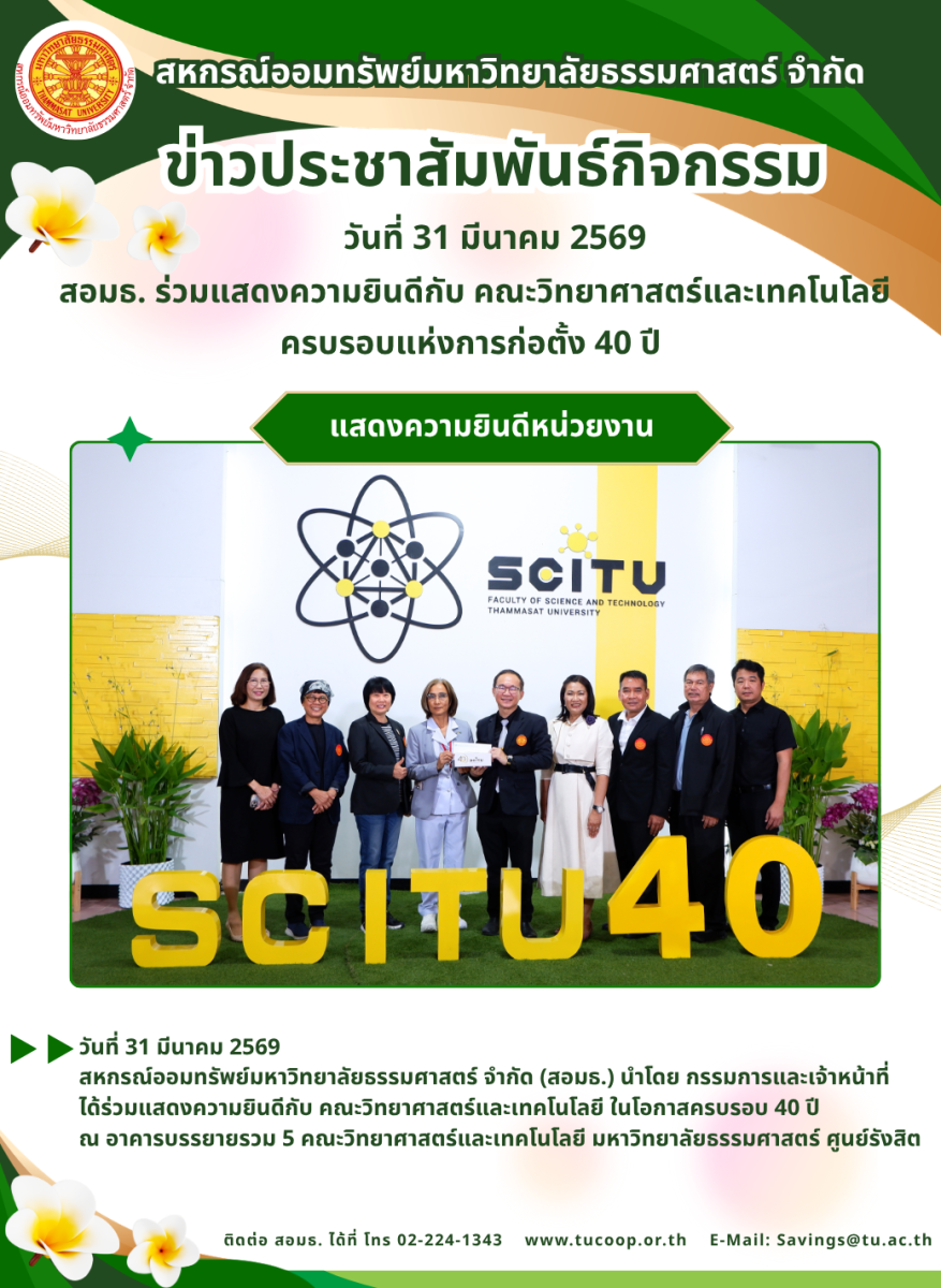 วันที่ 31 มีนาคม 2569 สหกรณ์ออมทรัพย์มหาวิทยาลัยธรรมศาสตร์ จำกัด (สอมธ.)